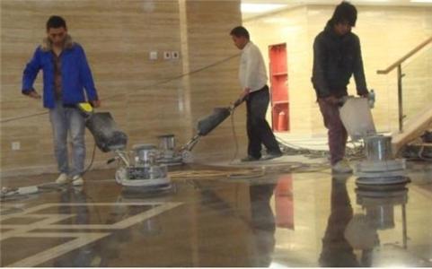 大理石結晶 處理是以晶硬粉及水晶加強劑配合機械,利用壓力和熱力先讓藥劑發(fā)生化學反應作用于石材表層,將石材面層下的毛細孔封閉,阻止污垢滲入石材內部。再對石材表層進行晶硬處理,起到增加石材表面硬度及亮度的作用,同時具有防滑的效果,這樣,石材原有的天然色澤起到顯露及全面保護作用,保持度較一般蠟水高3-5倍,且無需起蠟及補蠟等復雜保養(yǎng)工序,長期使用能節(jié)約人力物力。 結晶材料 1.大理石晶硬劑、大理石晶硬粉和配套保養(yǎng)液 2.鋼絲棉:0號鋼絲棉、1號鋼絲棉、1號不銹鋼鋼絲棉 3.打磨墊:馬毛墊、白墊、紅墊 結晶施工 1、使用洗地機先將大理石表面徹底清洗。 2、用純凈水將結晶粉調成糊狀,均勻涂抹在研磨墊上。 3、用結晶機配合結晶粉或結晶藥劑開始研磨。 4、當理石表面結成高光晶面后,用吸水機吸掉地面殘留糊狀物。 5、用拋光墊拋光,使地面完全干燥、光亮如鏡。 驗收 1、邊角與中央保持一致,光亮照人。 2、無污跡.無腳印及劃痕。 結晶特點 1、大理石結晶后石材表面整體均勻、清澈,有鏡面的感覺,顯現(xiàn)出石材原有的天然色澤。 2、光澤度高,可達85-100度以上,基本達到新出廠石材的標準。 3、硬度高,不易劃傷,一般硬物(或自然行走)不會對石材造成磨損。 4、表面干爽,不吸附灰塵,便于每日用靜電油推塵。