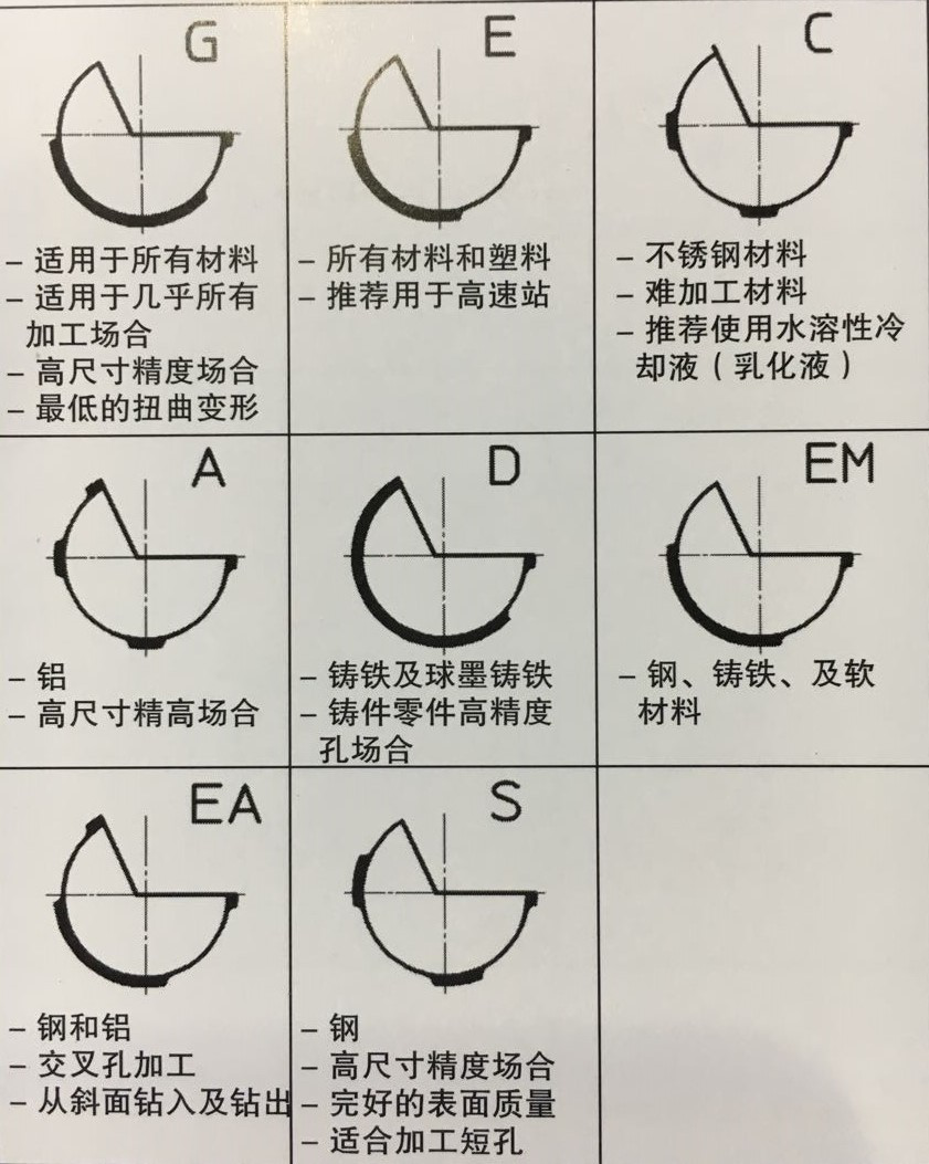 C形油隙:三點支撐。支撐面更小,并且,在三點支撐之間有儲油槽,可以使切削油充分的到達支撐面與孔壁之間,潤滑效果非常好,降低加工溫度,延長刀具使用壽命。