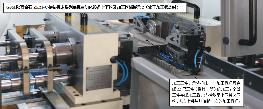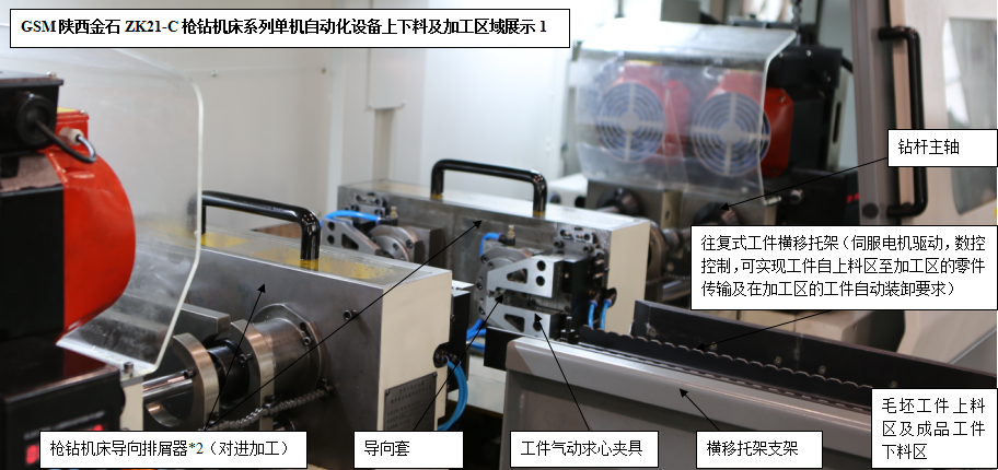 針對槍鉆加工領域特點和不同用戶的設備需求,陜西金石設計生產(chǎn)研發(fā)的ZK21-C槍鉆機床系列單機自動化產(chǎn)品(人工低強度參與的上下料、自動裝卸、自動加工),可以使得用戶在應對大批量軸類零件的精密深孔加工場合擁有了更多更好的選擇。